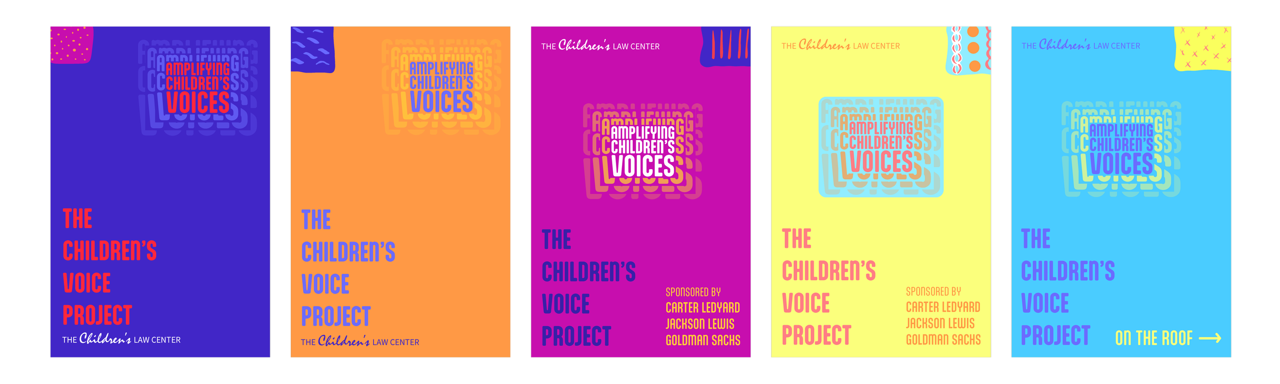 The Children’s Law Center was looking to refine their branding in time for the launch of The Children’s Voice Project, an initiative that empowers youth from low-income communities who have often been silenced or overlooked in the legal system. They needed the designs to incorporate the 12 mosaic tiles created by children that appear in one variation of their logo.